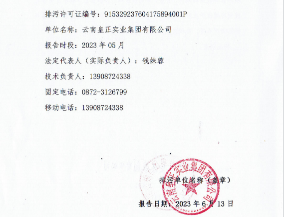 ? 云南皇正實業集團有限公司4月自行監測報告 2023-05-08